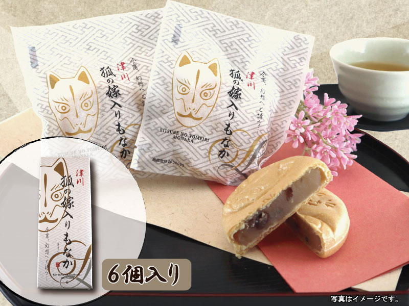 →少し塩味を効かせた白あんに、大納言小豆の豆と黒ごまが入ったもなか。新潟県阿賀町・津川地区に伝わる‟狐の嫁入り行列”をモチーフにした日本らしさを感じるパッケージも美しい(^^)きりん堂さん人気商品!