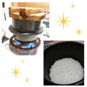 お寿司1貫、卵焼き、ガリ、梅びしお、村上牛しゃぶ、カニ茶碗蒸し、イカ旨煮。この前菜を楽しんでいるうちに目の前で銀シャリごはんが炊けます。