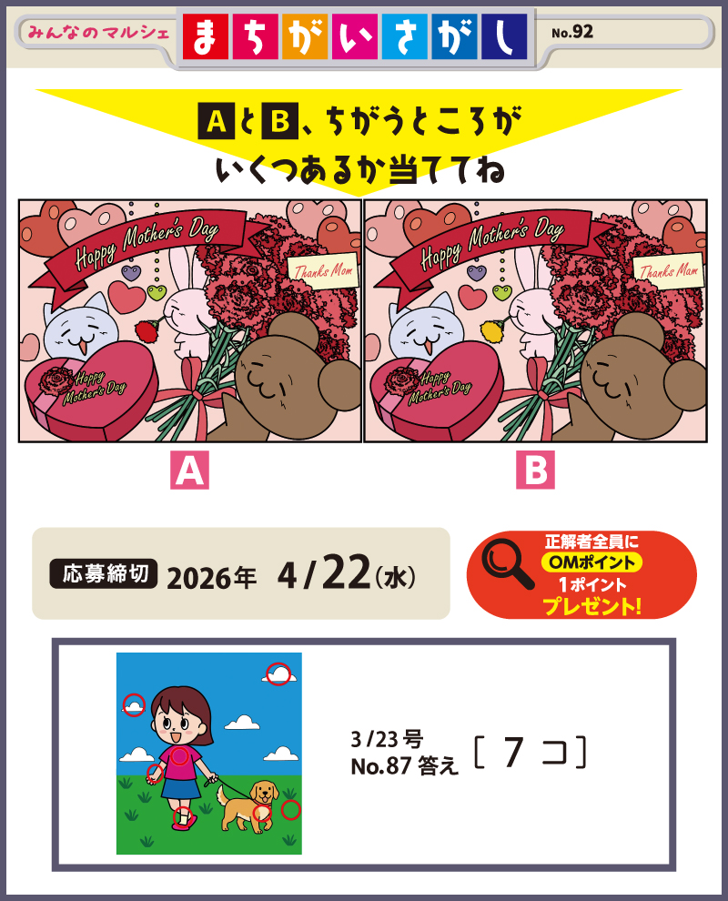 No.92 まちがいさがしでOMポイントをGet! 応募締切 4/22(水)