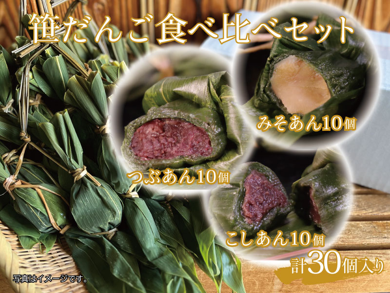地元でとれた材料で昔ながらの製法にこだわった笹だんごです。つぶあん入り10個とこしあん入り10個、みそあん入り10個のセット商品です。