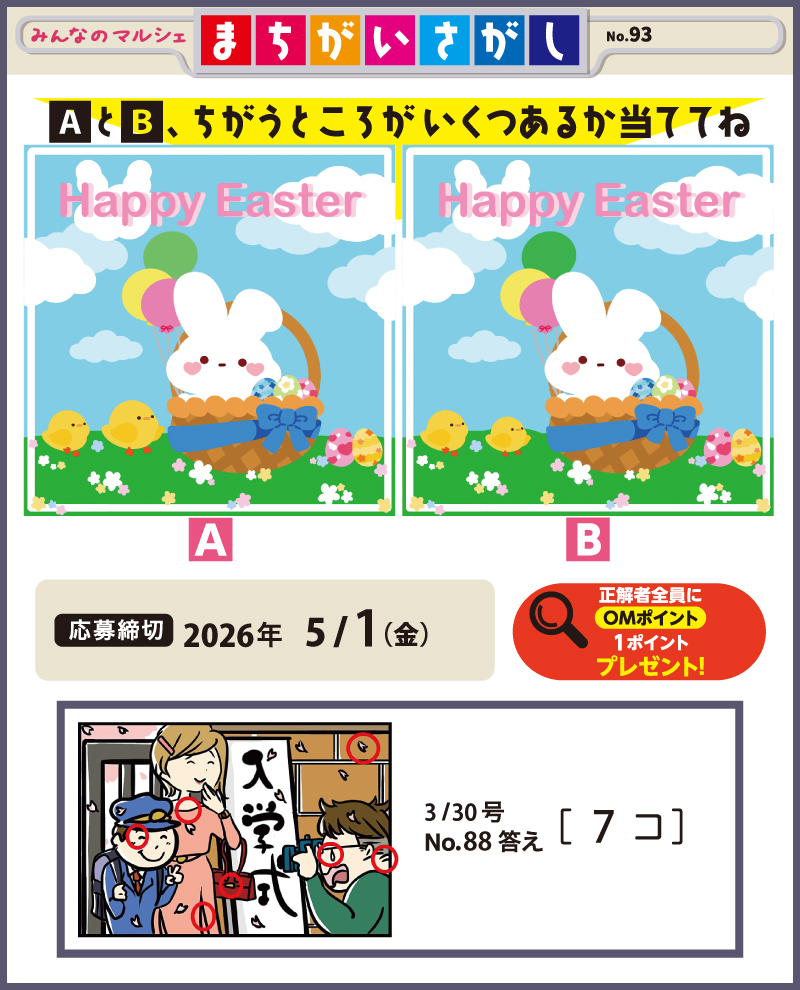 No.93 まちがいさがしでOMポイントをGet! 応募締切 5/1(金)