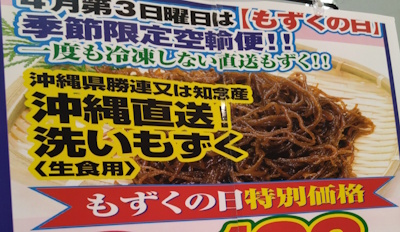 鮮度抜群の直送もずくを楽しめるのは今の時期だけ。