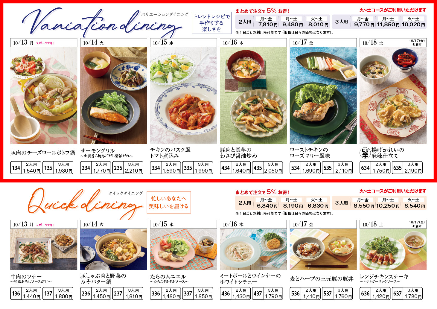 【10/13週】バリエーションダイニング – ラインナップ