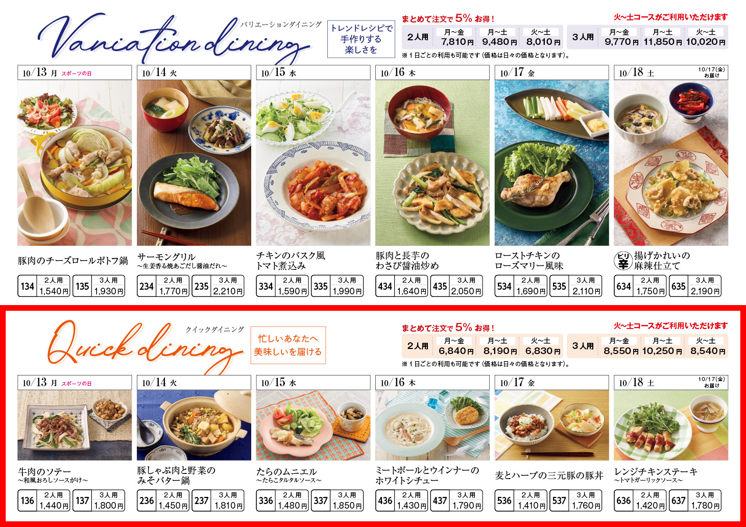【10/13週】クイックダイニング – ラインナップ