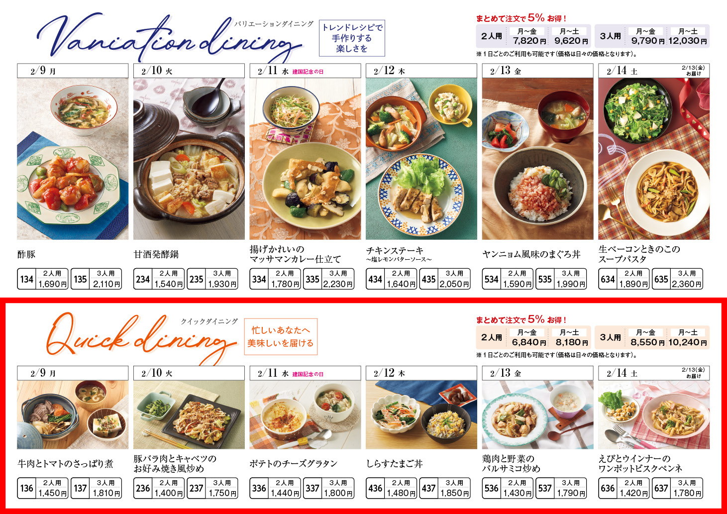 【2/9週】クイックダイニング – ラインナップ