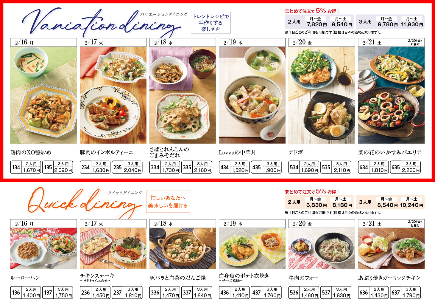 【2/16週】バリエーションダイニング – ラインナップ