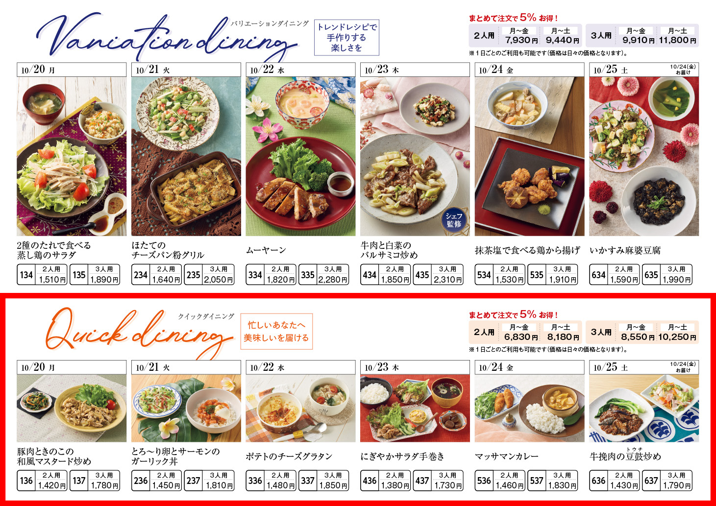 【10/20週】クイックダイニング – ラインナップ