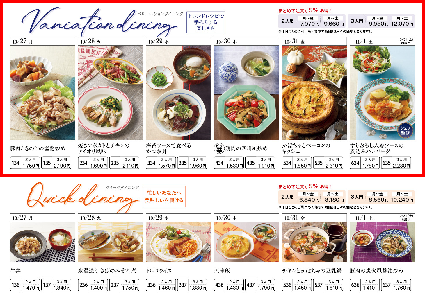 【10/27週】バリエーションダイニング – ラインナップ