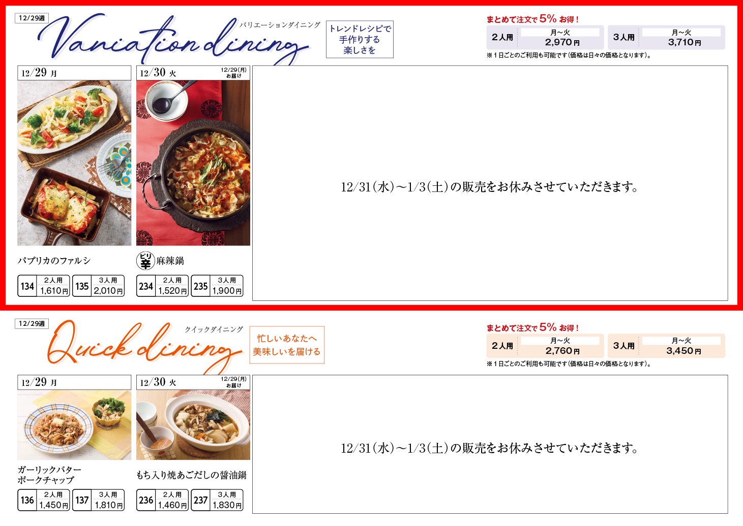 【12/29週】バリエーションダイニング – ラインナップ