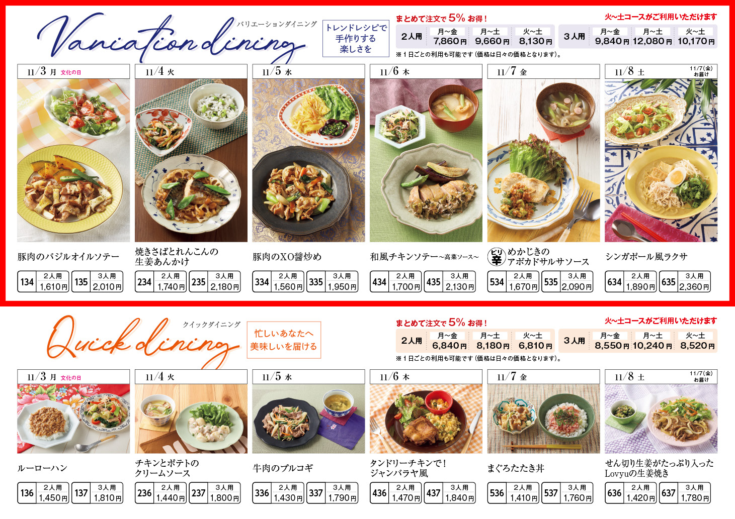 【11/3週】バリエーションダイニング – ラインナップ