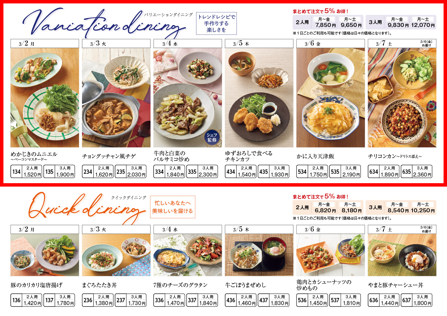 【3/2週】バリエーションダイニング – ラインナップ