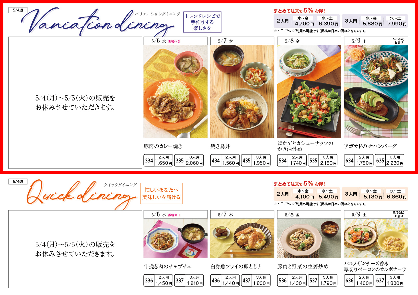 【5/4週】バリエーションダイニング – ラインナップ