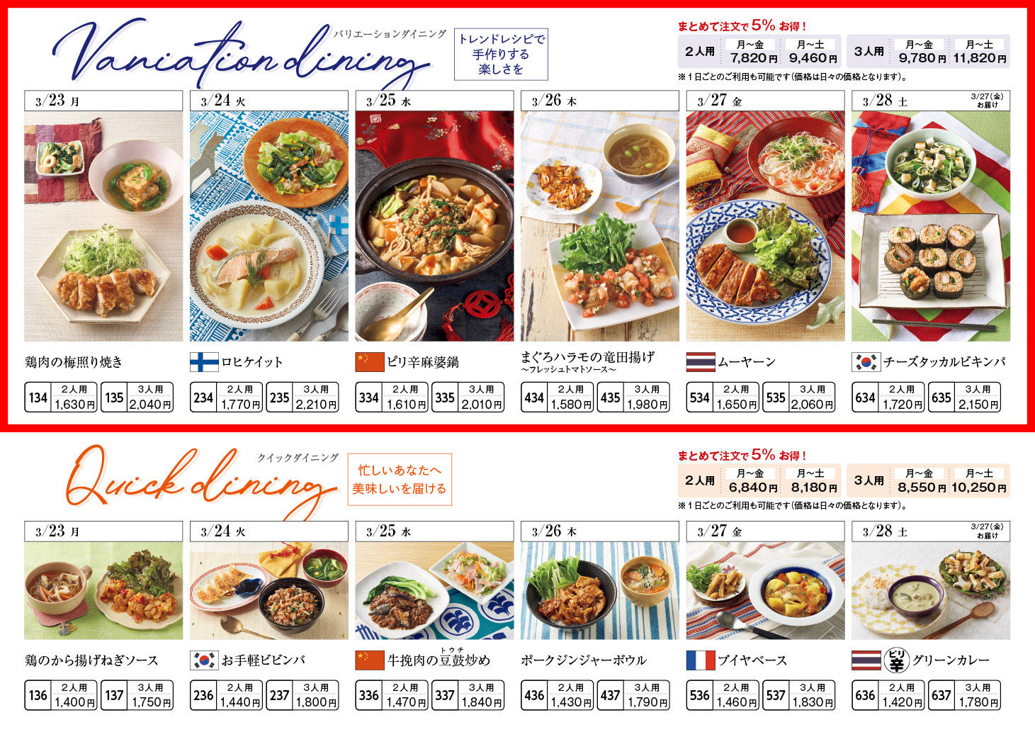 【3/23週】バリエーションダイニング – ラインナップ