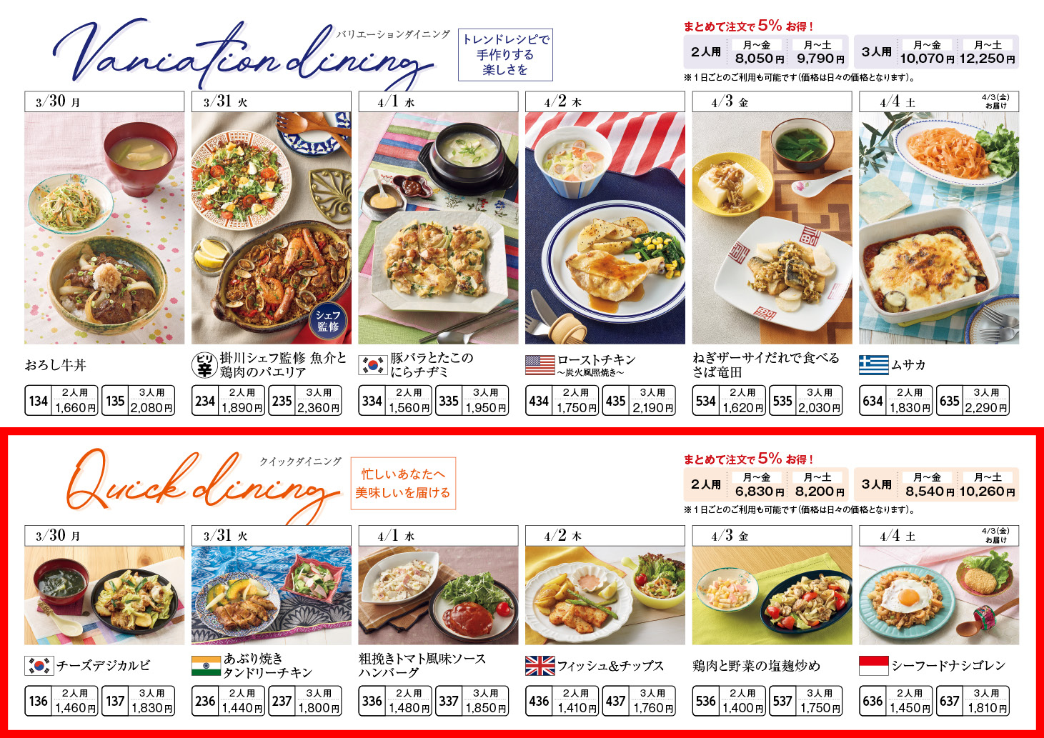 【3/30週】クイックダイニング – ラインナップ