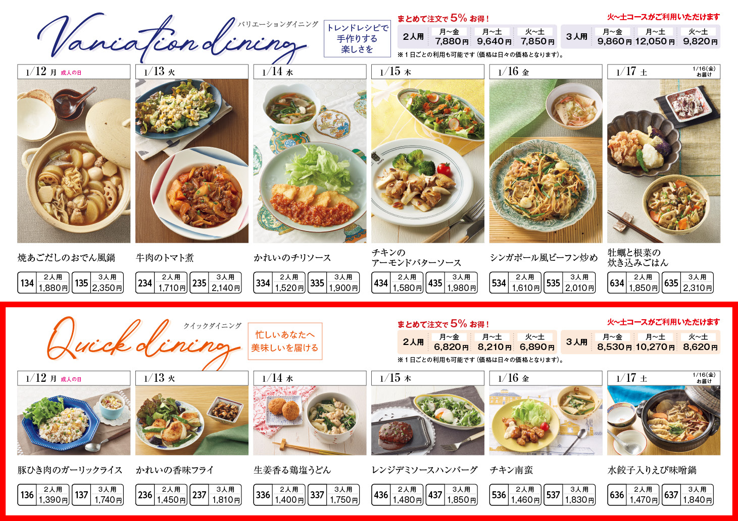 【1/12週】クイックダイニング – ラインナップ