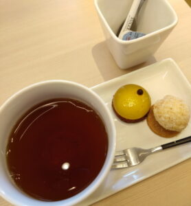 こちらはオプション的メニューになりますが、プチケーキと和紅茶のセット。