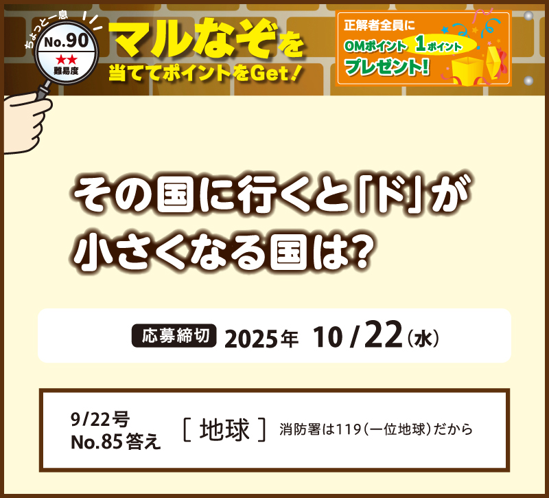 No.90 マルなぞを当ててOMポイントをGet! 応募締切 10/22(水)
