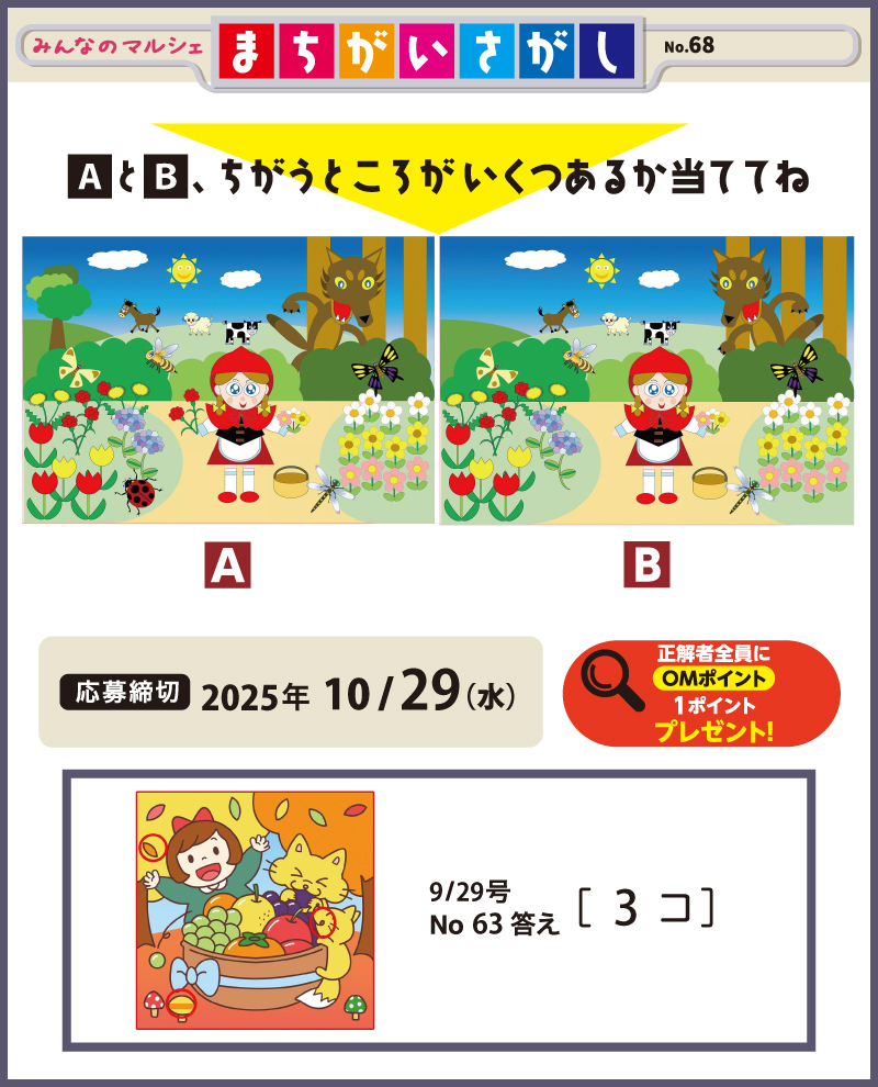 No.68 まちがいさがしでOMポイントをGet! 応募締切 10/29(水)