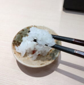 小さい器に少しだけよそって煮えばな、お米のアルデンテを楽しみます!