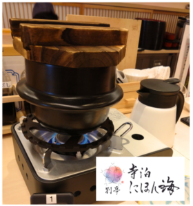 到着早々に一人前の釜に入ったお米が登場。早速点火!