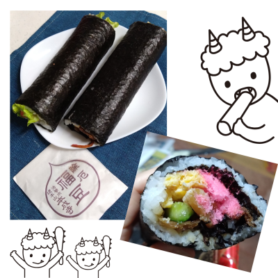 毎年恒例、三条市の本成寺の福豆をいただき、恵方巻を頬張りましたとさ(^▽^)