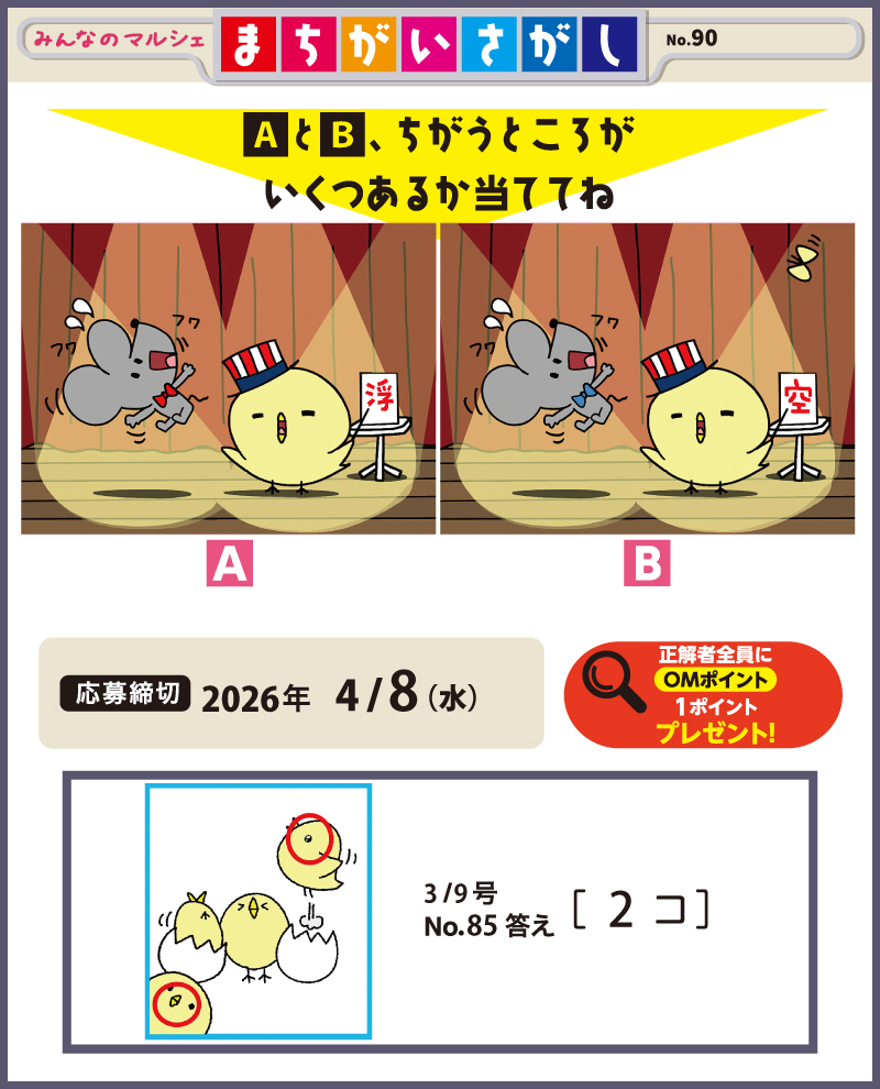 No.90 まちがいさがしでOMポイントをGet! 応募締切 4/8(水)