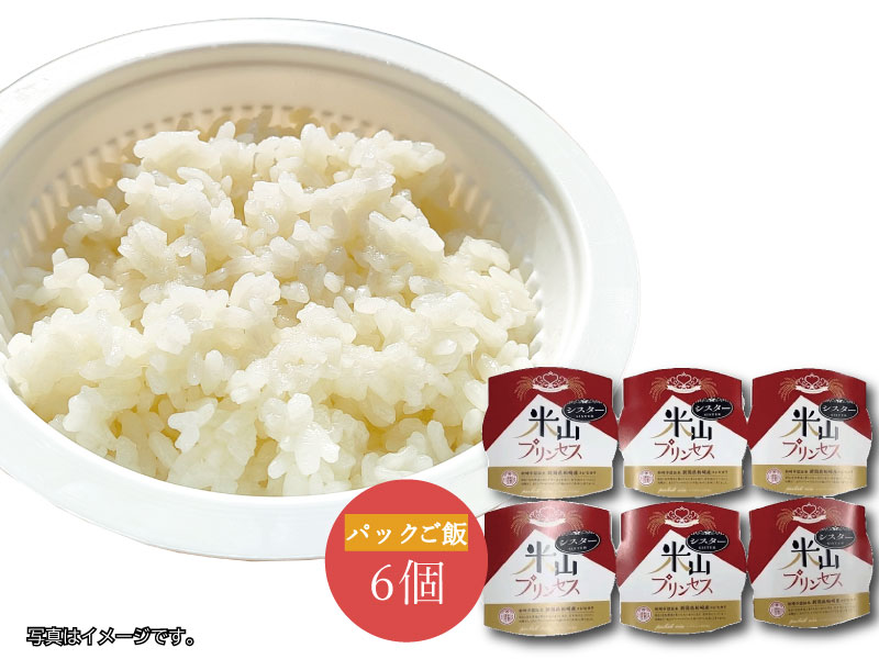 柏崎市の認証米「米山プリンセス」をパックご飯にしました。1パック150gで、ご飯茶碗約1杯分です。電子レンジで加熱するだけで、いつでも手軽に美味しい米山プリンセスのご飯が食べられます。また、急な食事や災害時の備蓄食料としてもおすすめです。
