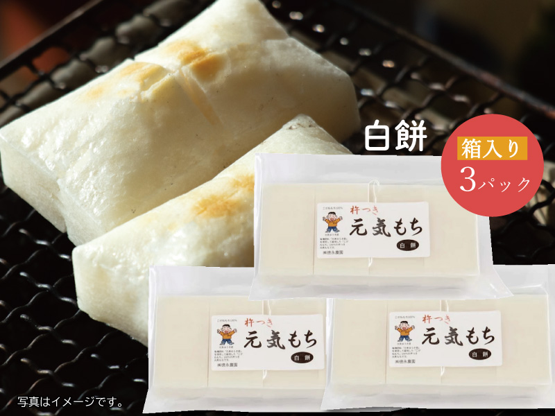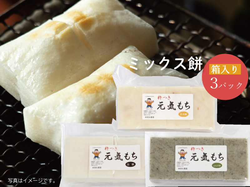 ふわふわに伸びる白餅、よもぎの春の香りをそのままつき込んだ香り豊かなよもぎ餅、大豆をふんだんにつき込んだ香り豊かなまめ餠のセットです。 [販売期間11月~3月まで]