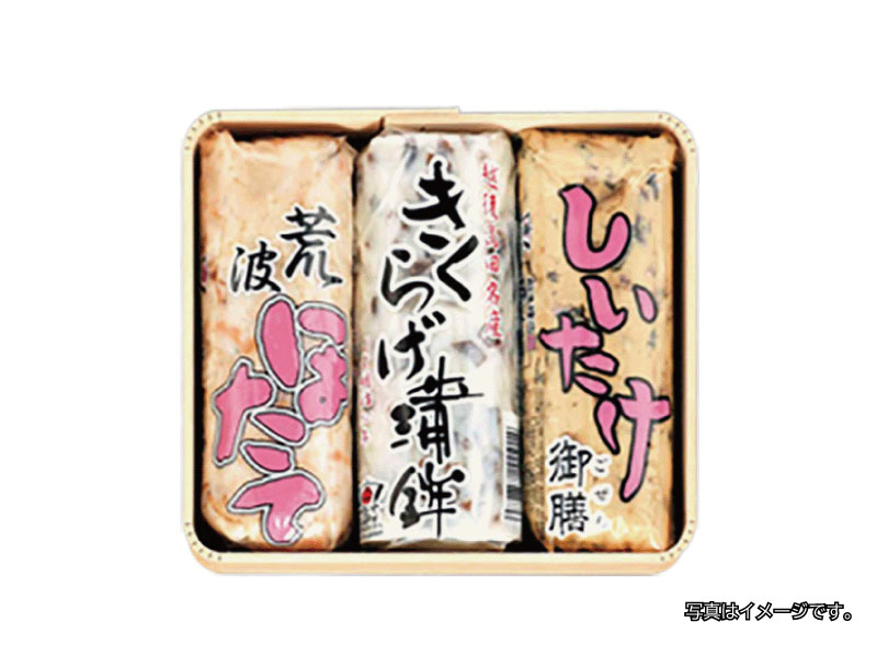 荒波ほたて200g・きくらげ蒲鉾230g・しいたけ御膳200g化粧箱入