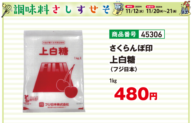 さくらんぼ印 上白糖 1kg 【お届け予定日 11月20日】