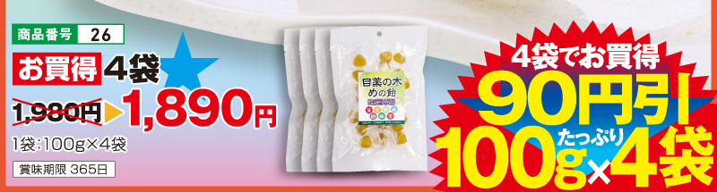 1袋:100g×4袋 賞味期限:365日 ===================== 【注文締切日 1月14日(水)】 =====================