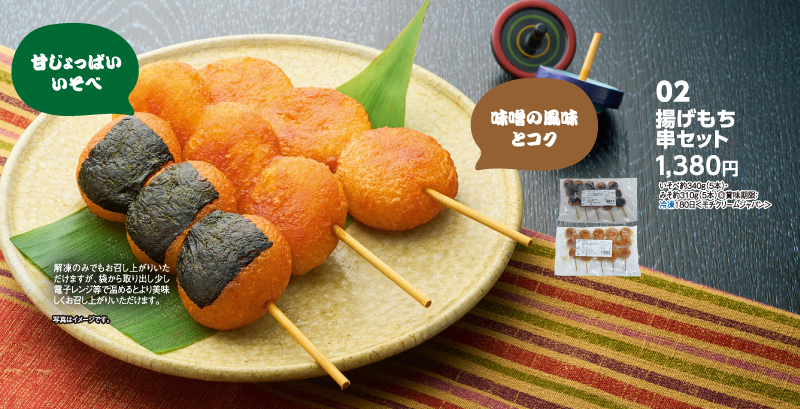 いそべ約340g(5本)・みそ約310g(5本) ◎賞味期限:冷凍180日 ===================== 【注文締切日 1月7日(水)】 =====================