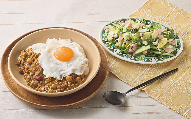 【237】クイックダイニング3人用 4/14(火)目玉焼きのせLovyuビーンズドライカレー