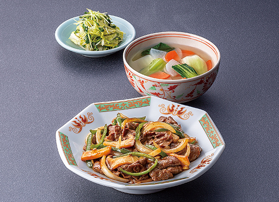 【502】スタンダードミール3人用 4/10(金)牛肉とエリンギの黒酢炒め