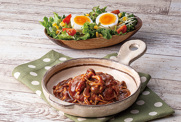 【209】ファンミール4人用 4/7(火)2種のきのこの煮込みハンバーグ