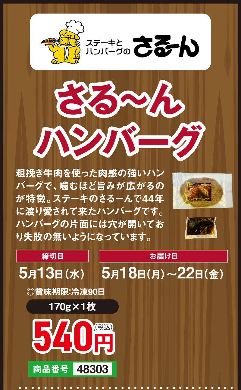 さる~ん ハンバーグ(170g×1枚)
