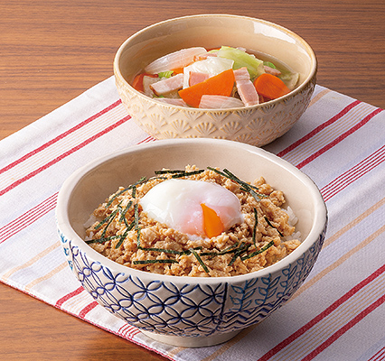 【418】カットミール3人用 11/6(木)包丁いらず!温玉のせ旨だし鶏そぼろごはん