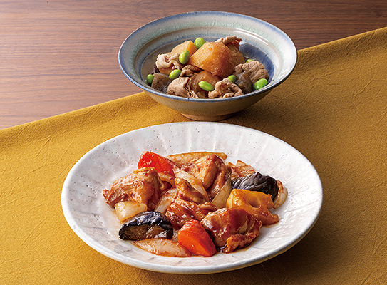 【107】ファンミール2人用 1/5(月)黒酢の郷 桷志田監修 鶏肉と根菜の黒酢炒め