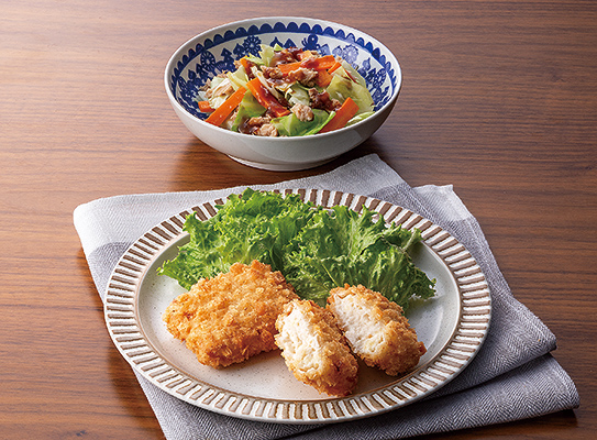 【519】カットミール4人用 1/16(金)包丁いらず♪豆乳チキンチーズカツ(成型肉)
