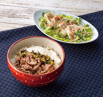 【451】プレミアムディッシュ3人用 1/15(木)麦とろ牛丼~高菜のせ~