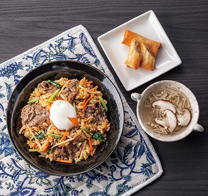 【451】プレミアムディッシュ3人用 1/8(木)温玉のせビビンバチャーハン