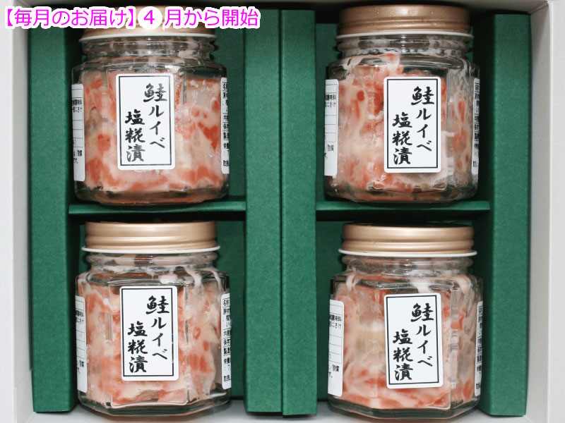※こちらの商品は【送料込み】の価格となります。 ■商品内容 鮭ルイベ塩糀漬80g瓶×4 【賞味期限】冷凍 60日 ※冷凍(-18℃以下)で保存してください。