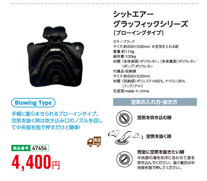 カラー:ブラック サイズ:約500×530㎜※空気を入れる前 重量:約115g 耐荷重:100㎏ 材質:〈本体表面〉ポリウレタン〈本体裏面〉ポリウレタン〈ポンプ〉ポリウレタン 付属品:収納袋 サイズ:約500×530㎜ 材質:〈収納袋〉ポリエステル65%、ナイロン35%〈フック〉アルミ 生産国:made in china