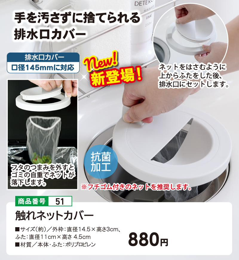 ■サイズ(約):外枠: 直径14.5×高さ3cm、ふた: 直径11cm×高さ 4.5cm ■材質: 本体・ふた: ポリプロピレン 排水口カバー 口径145mmに対応