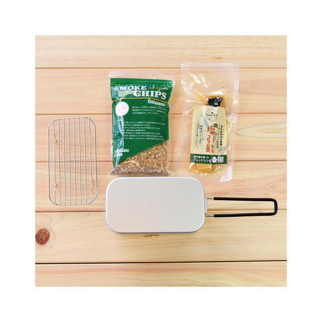 HC大人の塩引き鮭1切×1、メスティン網付き2合炊き(ハンドル収納時/約175×95×75㎜)×1、スモークチップ100g×1 【賞味期限】常温 製造から180日 ※発送時は賞味期限90日以上の商品を発送致します。直射日光を避けて涼しいところで保管してください。