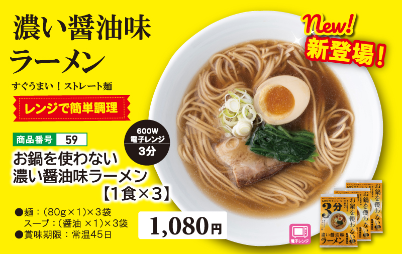 お鍋を使わない 濃い醤油味ラーメン【1食×3】