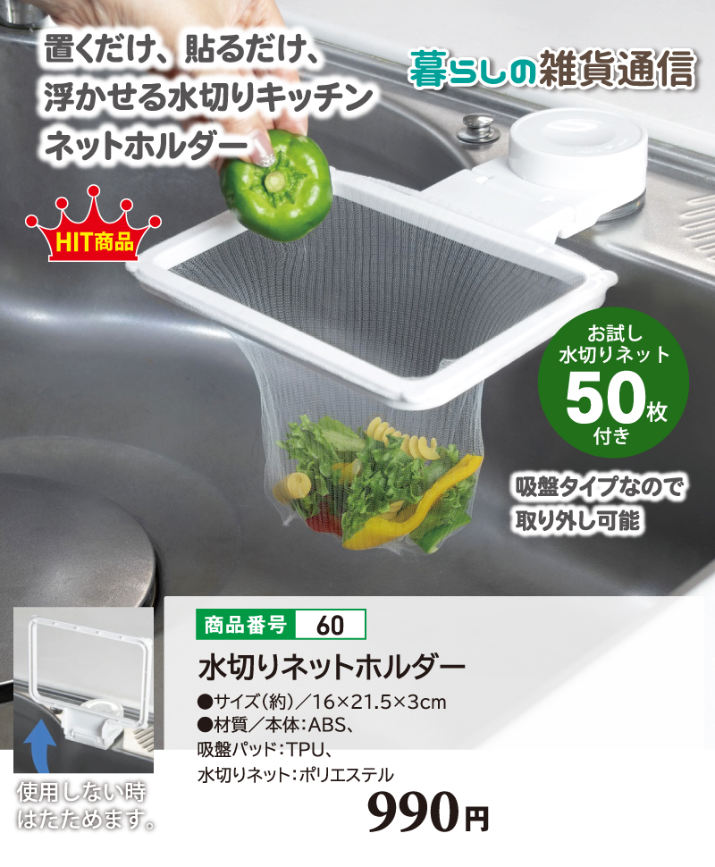 ●サイズ(約)/16×21.5×3cm ●材質/本体:ABS、吸盤:バンド:TPU、水切りネット:ポリエステル ===================== 【注文締切日 1月14日(水)】 =====================