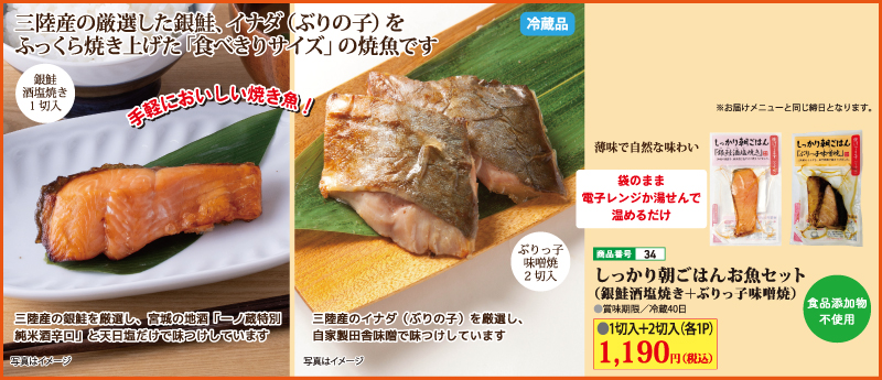 しっかり朝ごはんお魚セット (銀鮭酒塩焼き+ぶりっ子味噌焼)
