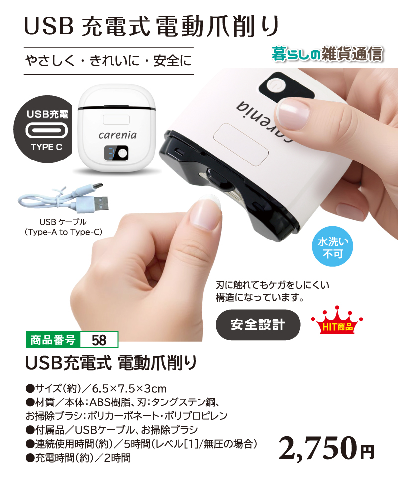 ●サイズ(約)/6.5×7.5×3cm ●材質/本体:ABS樹脂、刃:タングステン鋼、お掃除ブラシ:ポリカーボネート・ポリプロピレン ●付属品/USBケーブル、お掃除ブラシ ●連続使用時間(約)/5時間(レベル[1]/無圧の場合) ●充電時間(約)/2時間 ===================== 【注文締切日 1月14日(水)】 =====================
