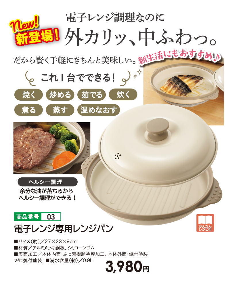 ■サイズ(約)/27×23×9cm ■材質/アルミメッキ鋼板、 シリコーンゴム ■表面加工/本体内面:ふっ素樹脂塗膜加工、 本体外面:焼付塗装、フタ:焼付塗装 ■満水容量 (約)/0.9L 〇かんたんレシピ付き